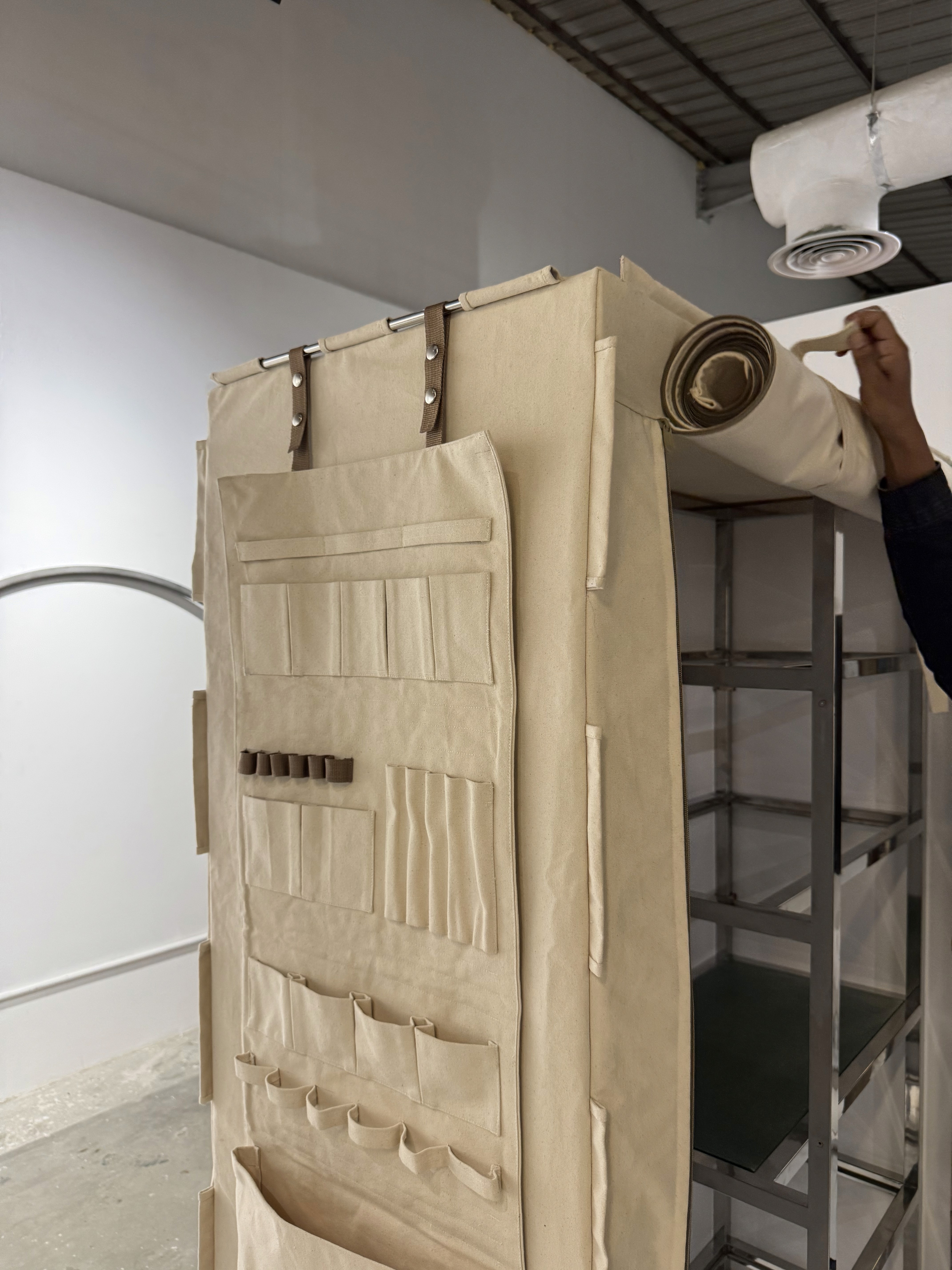 Textiles, found objects, embedded elements, hybrid construction